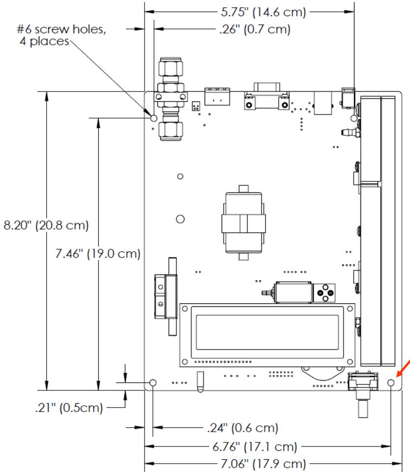 電路闆有四個孔,用於(yú)将臭氧監測儀安裝到儀器下方的支架上(圖 1)。 這些孔用於(yú)#6 機器尺寸螺釘。 如果安裝到未接地的物體上,請使用絕緣螺釘和墊圈來安裝儀器,否則使用不鏽鋼螺釘和墊圈固定三個孔,並(bìng)在選擇開關的孔上使用塑料墊圈(見下文)。